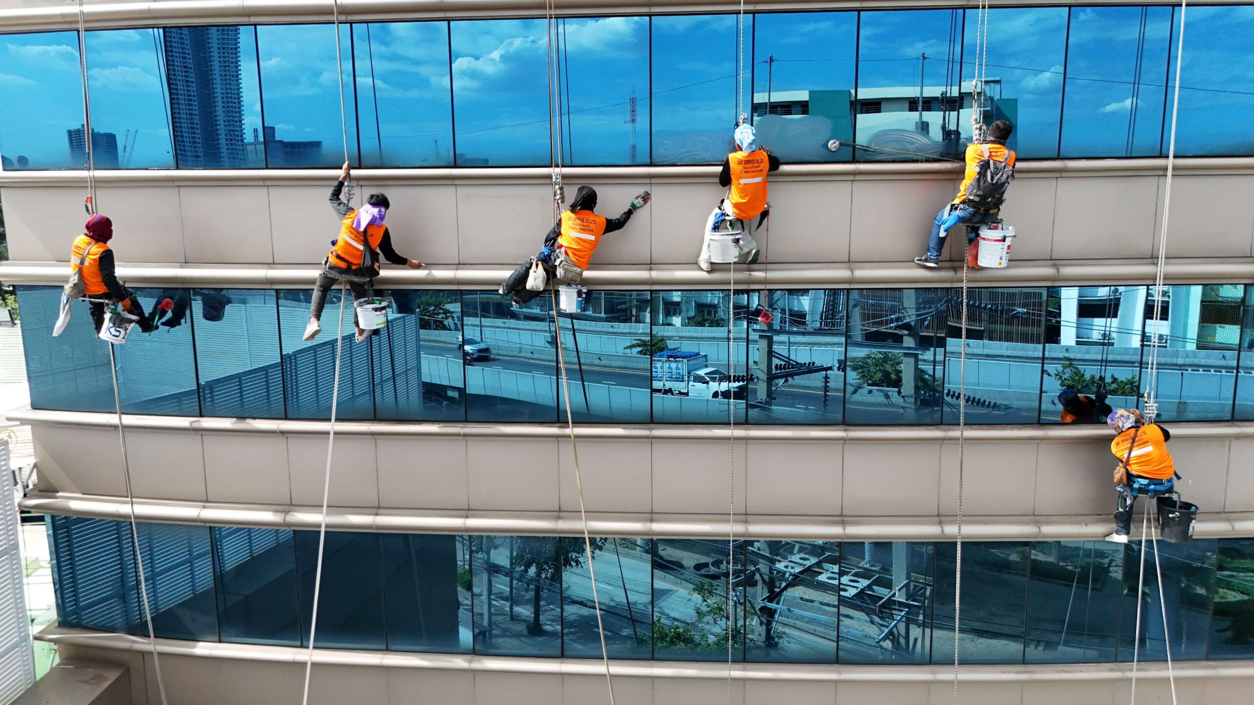 บริการทีมโรยตัวเช็ดกระจกตึกสูง อาคารสูง บริการงานเช็ดกระจกภายใน ภายนอกอาคาร ทีมงานเฉพาะทางที่มีประสบการณ์และความเชี่ยวชาญในด้านการโรยตัวเช็ดกระจก ทำความสะอาดกระจก งานละเอียด ใส่ใจทุกซอกทุกมุม